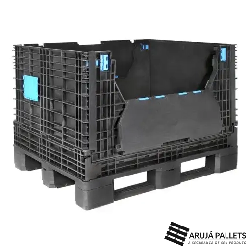 A Caixa palete dobrável industrial. é muito ordinário por ser um artigo ativo que incluir-se para aguentar pesos, é bem adaptável para qualquer produtos por calcular com uma estrutura dinâmica, pois conta com duas entradas para facilitar manipulação do produto dentro da caixa, possibilitando Acesso lateral, travas de segurança, montada por componentes, de fácil manutenção e dobrável, por ser dobrável, ela se adapta para armazenar e economizar espaço.
